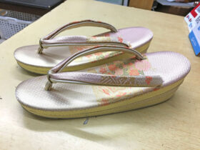 先日、婚礼に履く草履がきつくて履けないとのことでご来店されたお客様がいらっしゃいました。 草履を拝見するとかなりキツイ鼻緒調整だったので緩めようとした所、緩める余裕がないくらい前壺の麻が短く切ってあり、履けるようにするには前壺の交換が必要で…