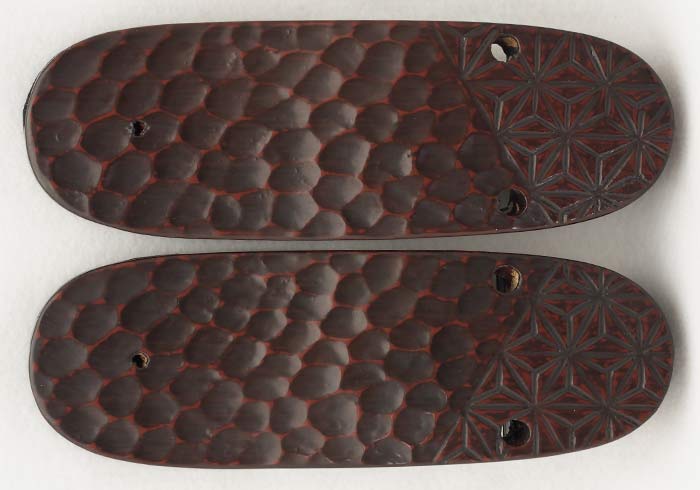 刀目彫付の本鎌倉彫の右近下駄です。一つ一つ手彫り仕上げのため画像のものとは若干彫り目が異なる事があります。