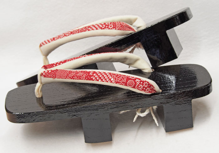 芳町黒塗り並分紅緋色ワナ鼻緒付き