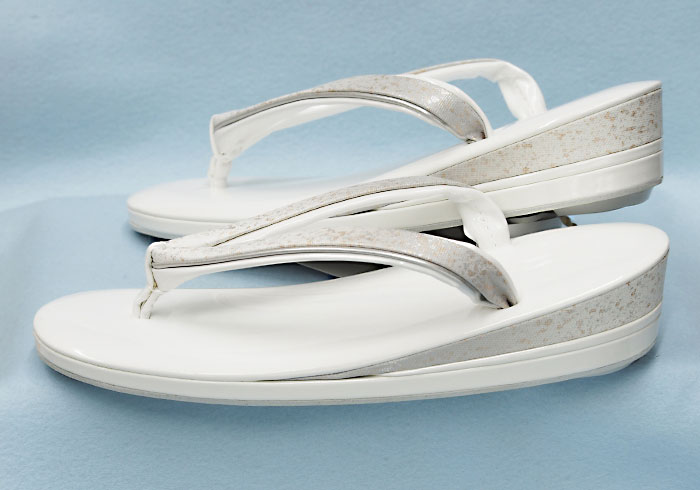 シルバーメタリックの合皮を使ったフォーマル向けの、造りが良い割にお求めやすい価格の草履です。通常のMサイズより若干幅が広くなっています。