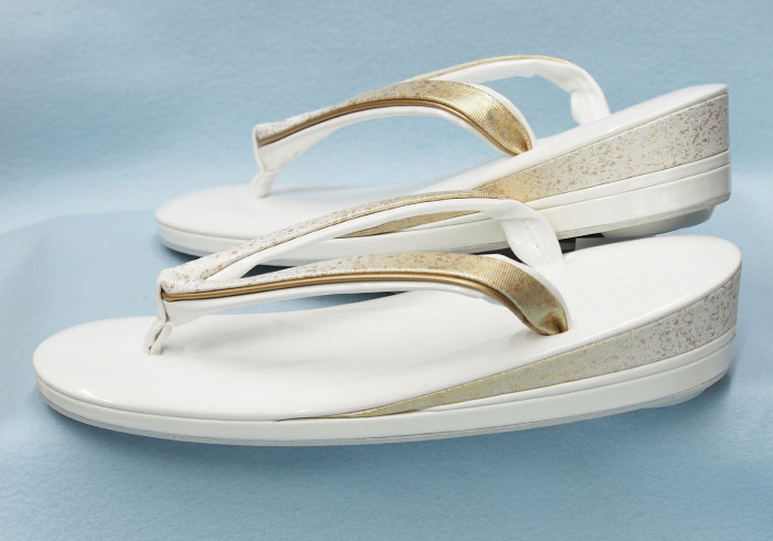 ゴールドメタリックの合皮を使ったフォーマル向けの、造りが良い割にお求めやすい価格の草履です。通常のSサイズより若干幅が少し広くなっています。