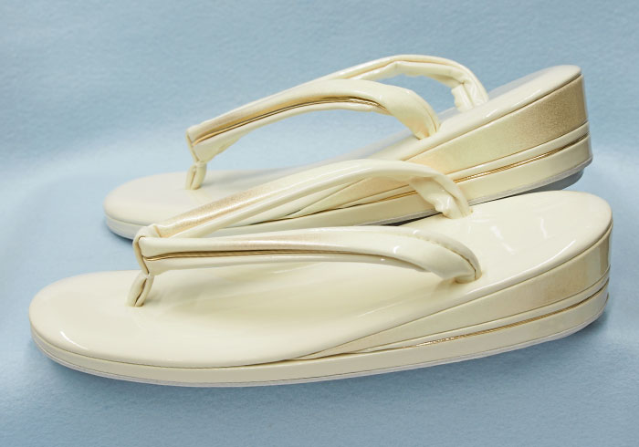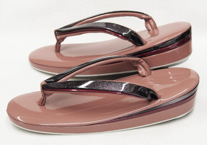 塗装仕上げの合成皮革ではなく、合成皮革製造時に顔料を混ぜて着色することで製造コストを抑えた、造りが良い割にお求めやすい価格の草履です。通常のSサイズより若干幅が広くなっています。
