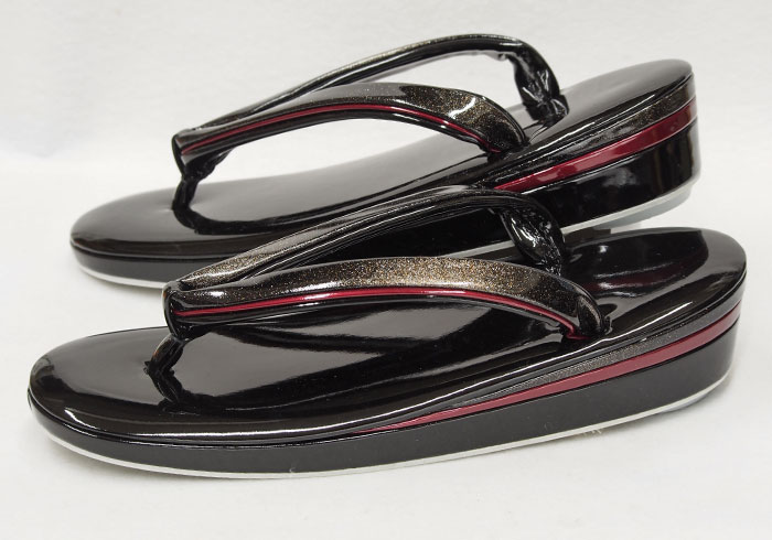 エナメル光沢のある合成皮革を使用した、造りが良い割にお求めやすい価格の草履です。通常のMサイズより若干幅が広くなっています。