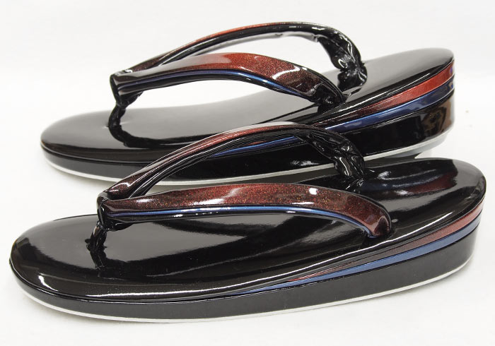 塗装仕上げの合成皮革ではなく、合成皮革製造時に顔料を混ぜて着色することで製造コストを抑えた、造りが良い割にお求めやすい価格の草履です。通常のLサイズより若干幅が広くなっています。