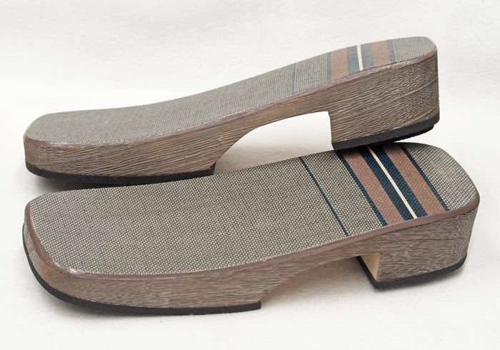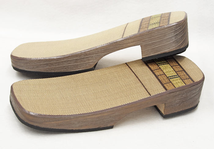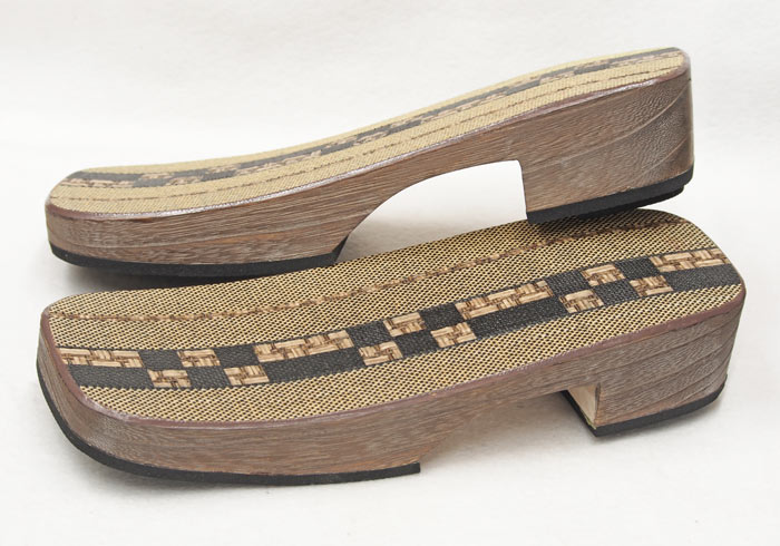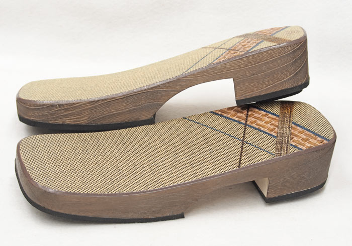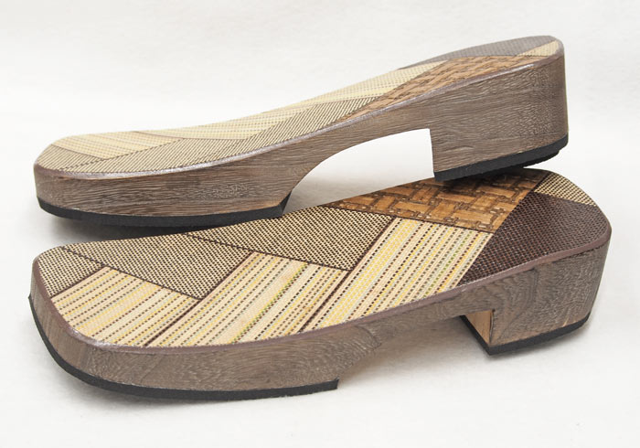 野崎表と呼ぶ竹皮を編んだ物を接着した右近下駄です。