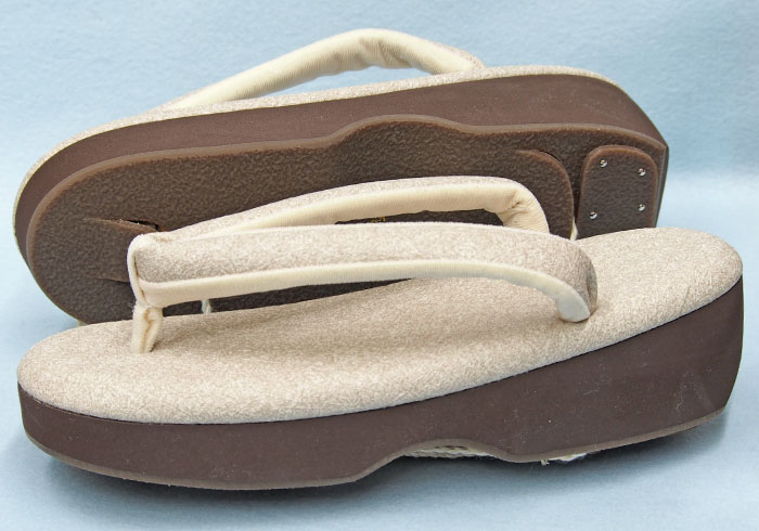 合皮に塗装するのではなく、合皮製造時に着色することで製造コストを抑えた、造りが良い割にお求めやすい価格の草履です。通常のLサイズより若干幅が広く、足の収まりが良い形になっています。